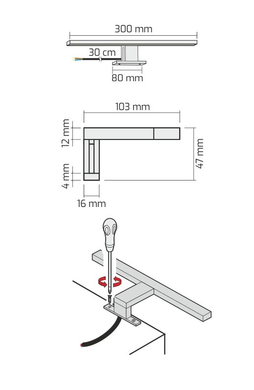 Светильник LED AMBER UNIWERSALNY IP44 4,5W 230VAC 3000К, провод 30 см, черный арт.AMBER-U-CZ-30K-01