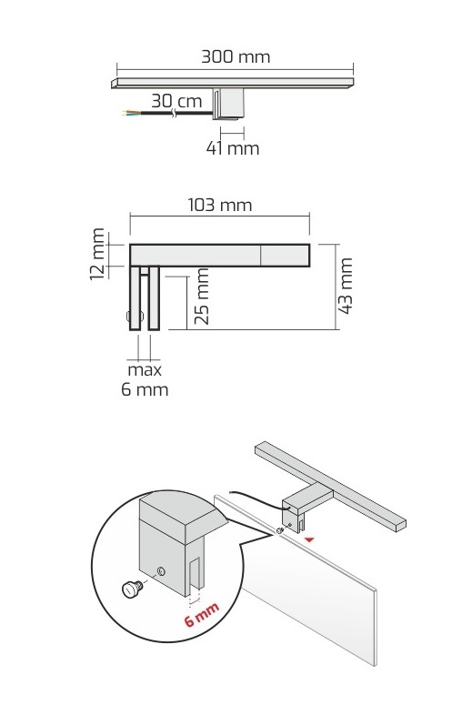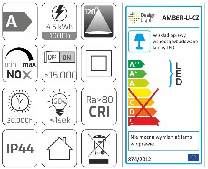 Светильник LED AMBER UNIWERSALNY IP44 4,5W 230VAC 4000К, провод 30 см, черный арт.AMBER-U-CZ-40K-01
