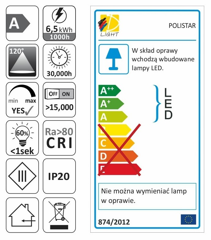 Светильник LED POLISTAR 6,5W 12VDC 3000К LED5630, провод 2 м, алюминий арт.POLISTAR-30K-01W