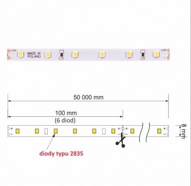 LED лента PREMIUM 60LED/1м 50 м 2835 IP20 8 мм 3000К 5W/1m арт.R-24-2835-50-20-30K-01