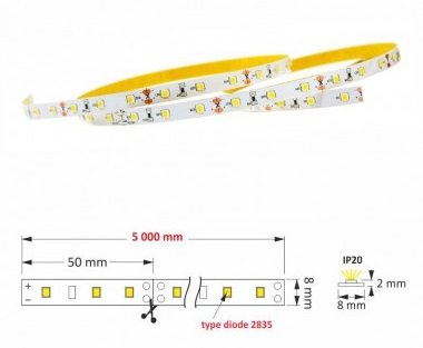 LED лента PREMIUM 300 LED 2835 IP20 8 мм 3000К 30W/5m арт.R-2835-300-20-30K-03
