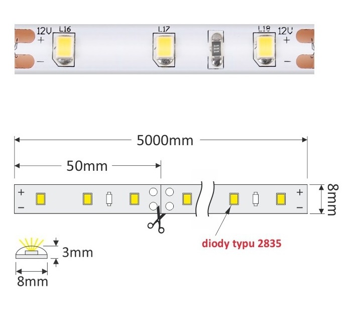 LED лента PREMIUM 300 LED 2835 IP45 8 мм 6000К 30W/5m арт.R-2835-300-45-60K-03