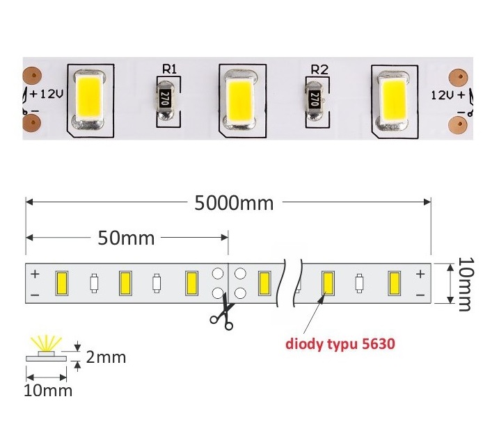 LED лента PREMIUM 300 LED 5630 IP20 10 мм 4000К 80W/5m CRI>81 арт.R-5630-300-20-40K-02