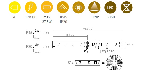 LED лента RGB 150 LED IP45 10 мм 37,5W/5m арт.R-LFL3-10MM-150-RGB1