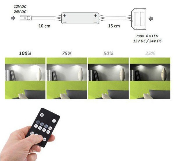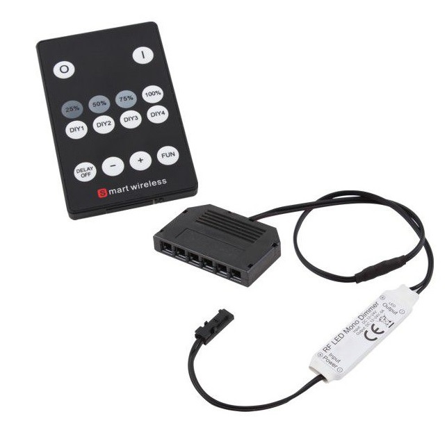 Контроллер LED MONO RF 12VDC 6A с пультом, выход на 6 светильников арт.STER-MONO-RF6-02