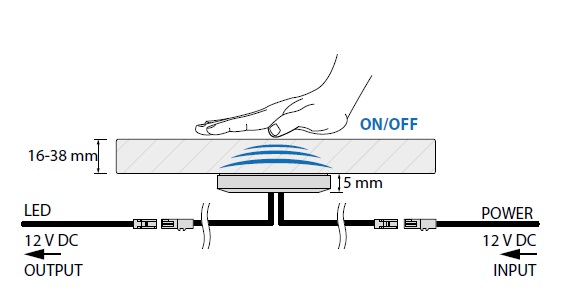 Выключатель под столешницу емкостной 12VDC, провод 1м арт.WE-CSW-BI-NO-MIN01