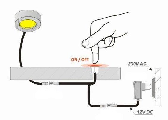 Выключатель сенсорный LED 12VDC 24W белый арт.WYL-SENS-24W-BI-02