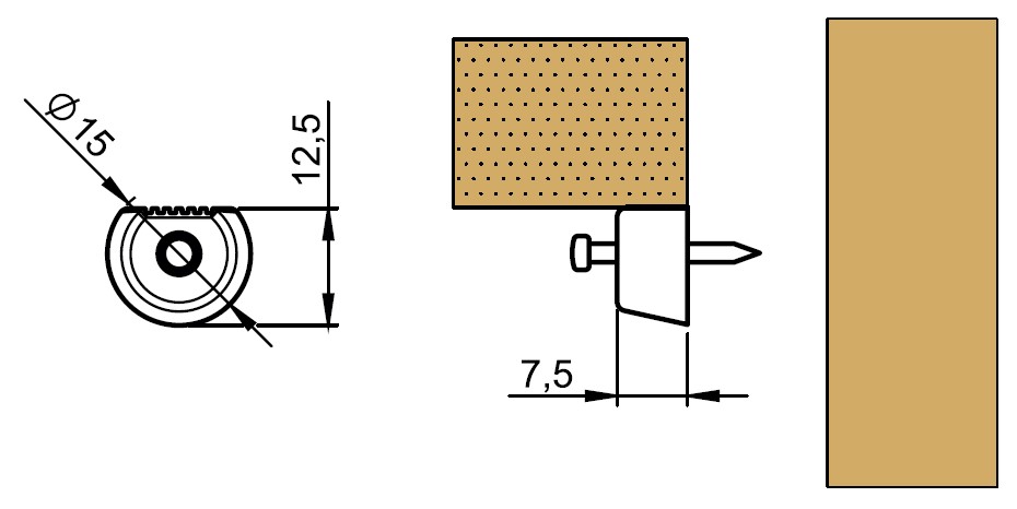 Полкодержатель пластмассовый с несущей рифленной поверхностью укомплектованный латунным гвоздиком для надежной фиксации внутренних полок.