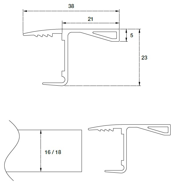Профиль горизонтальный Г-образный H=18 мм Gola арт.70.278.801.000.400