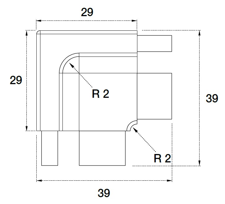 Уголок (алюм.) внутр. 90 гр для профиля горизонтального Г-образного Gola R=0 арт.70.101.5IZ.111.001