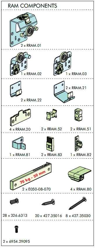 RAM.A28 Система раздвижных дверей RAM с демпфером (комплект для 2-ух дверей)