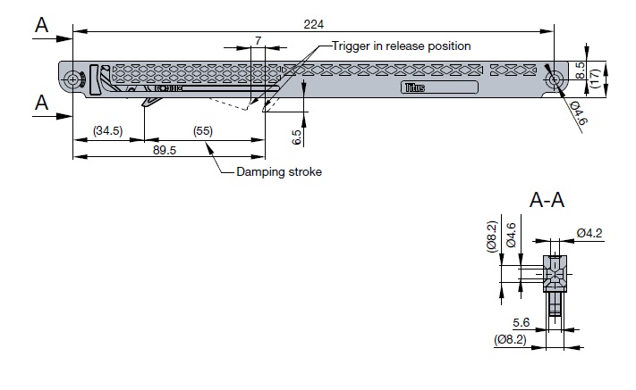 Доводчик Titus Slidix II предназначен для демпфирования ящиков и раздвижных дверей: