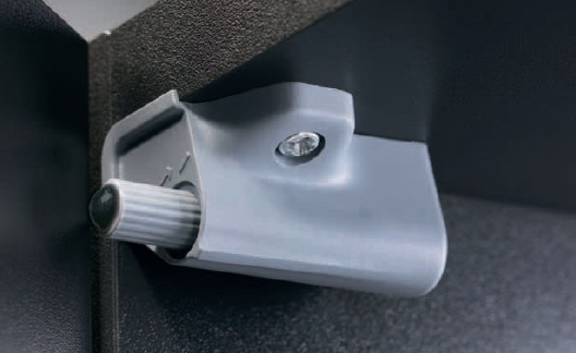 - крепится в угол одним саморезом с той же стороны, где установлены петли (саморез в комплекте);
