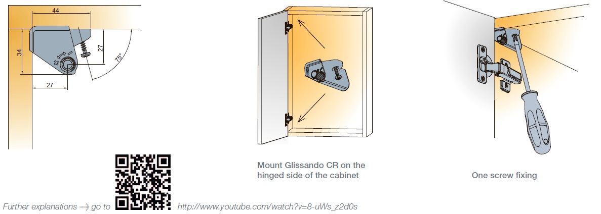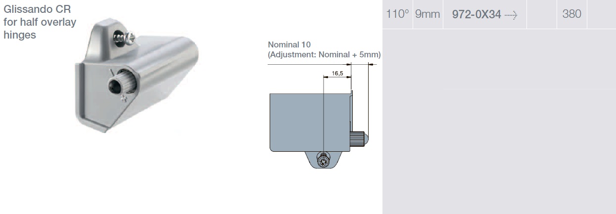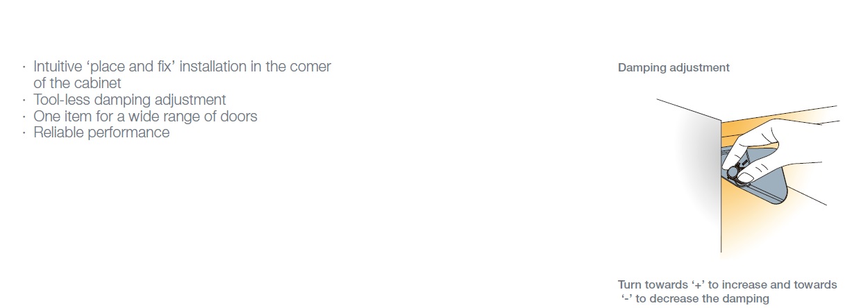 Glissando CR - универсальный демпфер, используется с мебельными петлями разных производителей.