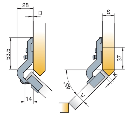 Петля мебельная Titus Miniprimat угловая 45 градусов 95/38/18 мм. Арт: 243-0002-050-00