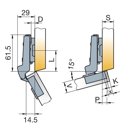 - система крепления петли к монтажной планке - clip-on (защелкивание);