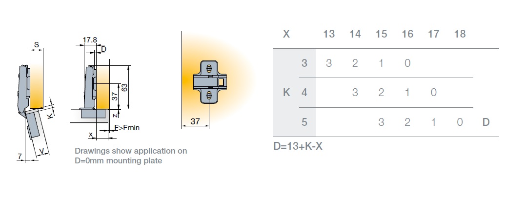 Глубина сверления под чашку петли, мм