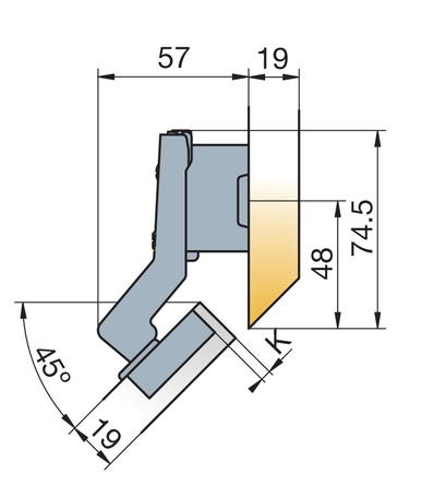 Петля мебельная Titus B-Type угловая 45 градусов 110/48/18 мм. Арт: 248-0L28-050-TL