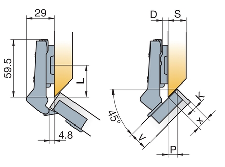 Петля мебельная Titus B-Type угловая 45 градусов 110/45/9 мм. Арт: 248-0L32-650-TL
