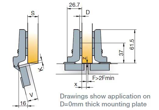 Глубина сверления под чашку петли, мм