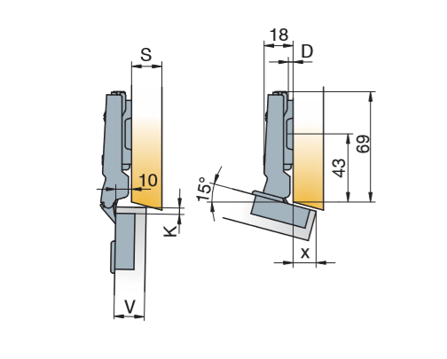 Петля мебельная Titus S-Type угловая 15 градусов 110/48/0 мм. Арт: 248-0V39-050-TL