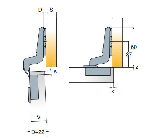 Петля мебельная Titus B-Type для толстых фасадов с прямым корпусрм 90 градусов 93/52/18 мм. Арт: 249-7303-050-TL