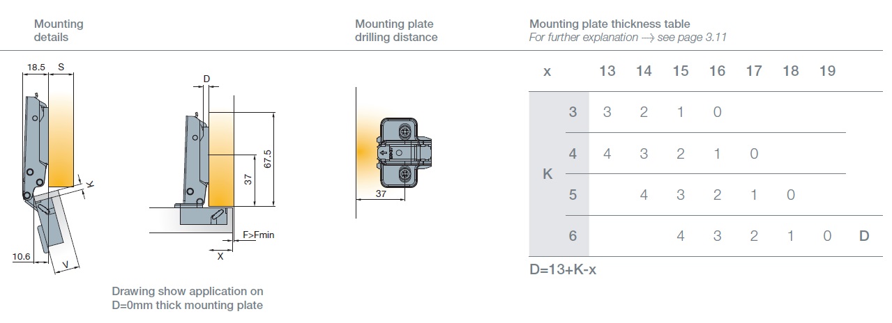 Глубина сверления под чашку петли, мм