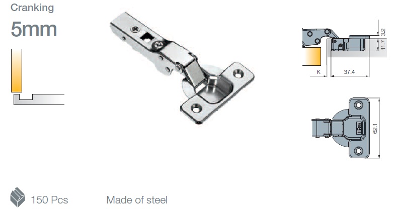 Глубина сверления под чашку петли, мм