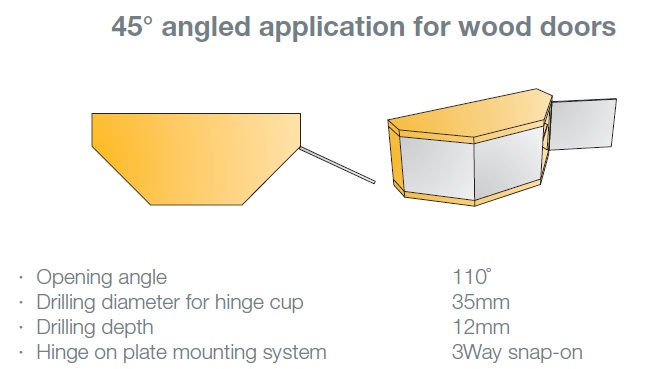 Петля мебельная Titus T-Type угловая 45 градусов 110/45/17 мм с cистемой ускоренной сборки Easy-fix Арт: 702-0C53-650-00