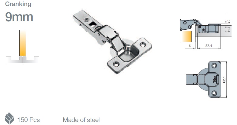 Глубина сверления под чашку петли, мм