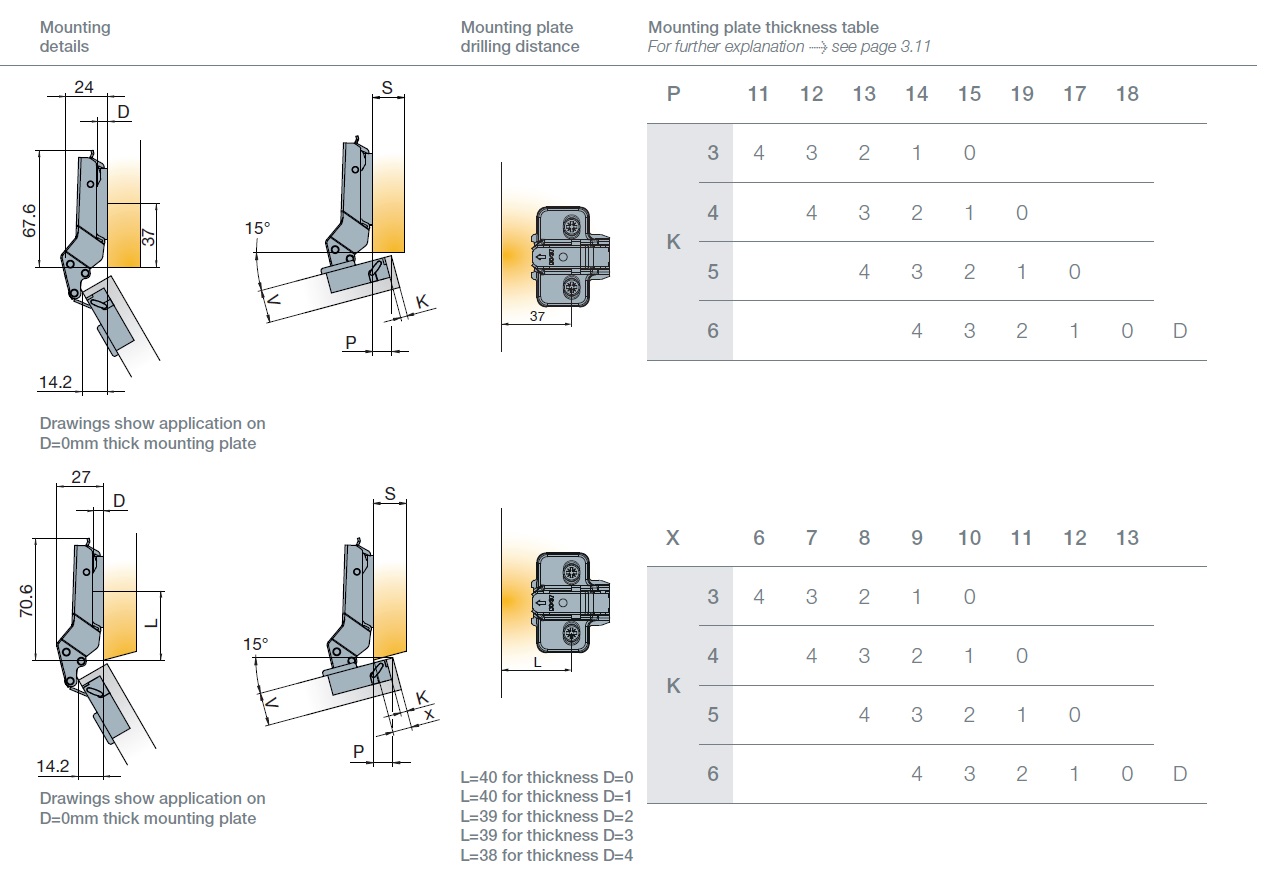 Глубина сверления под чашку петли, мм