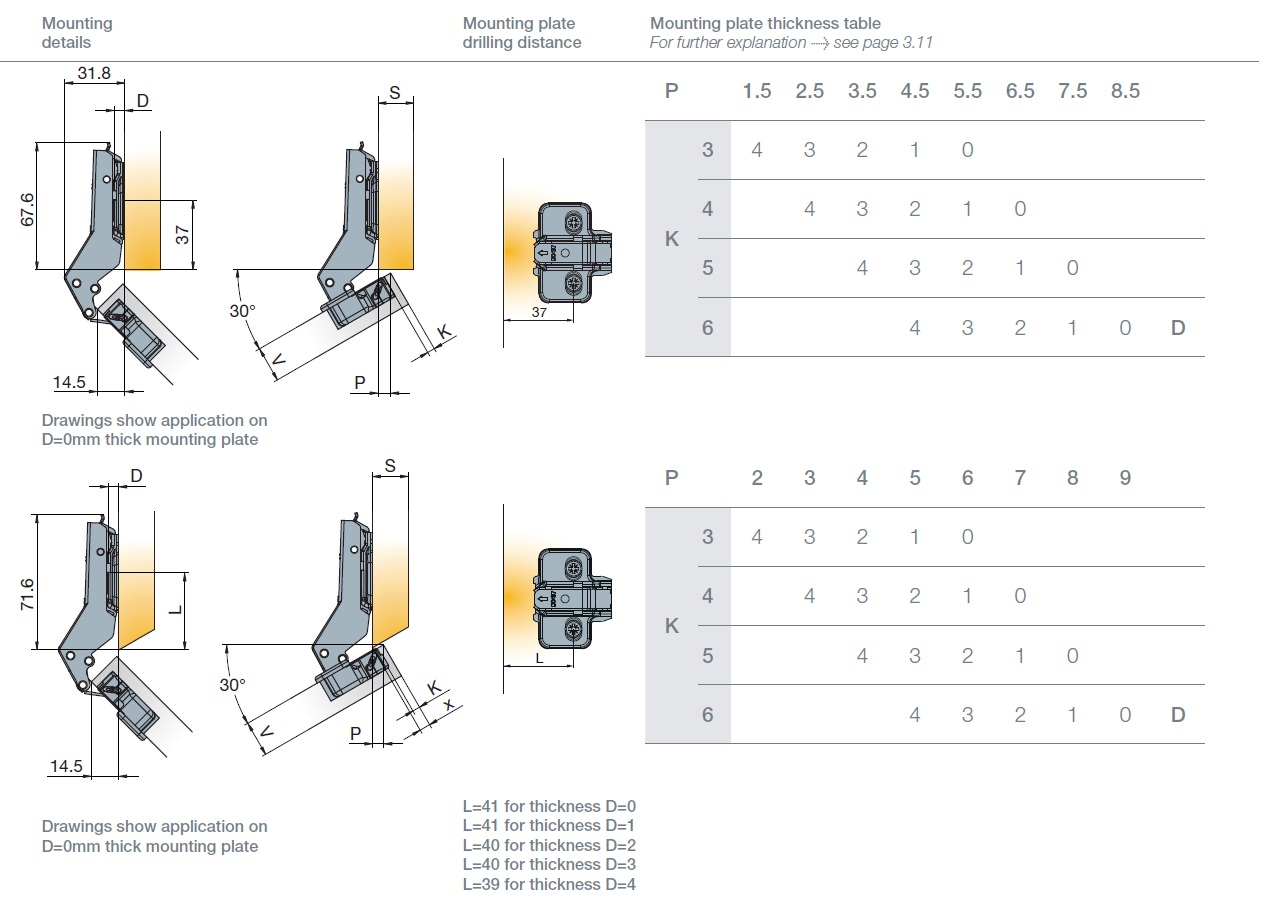 Глубина сверления под чашку петли, мм