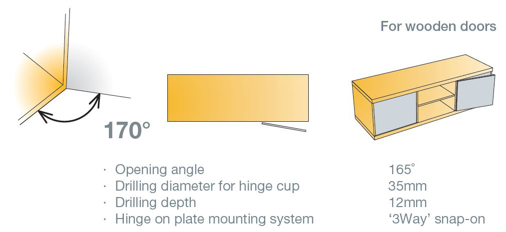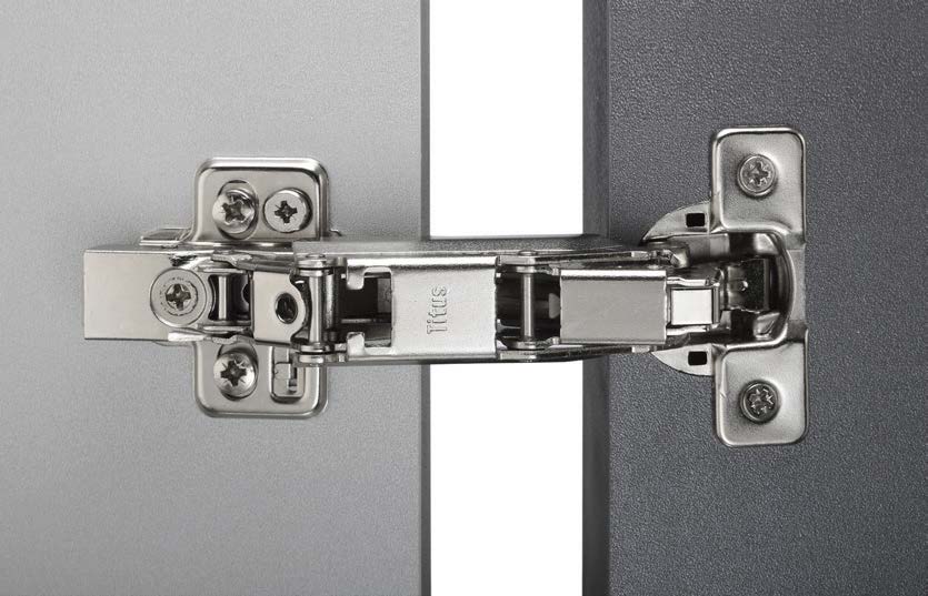 Петля T-type 170/52/0 мм от бренда Titus относится к накладному типу и предназначена для установки на любой тип мебели, выполненной из дерева — ДСП, МДФ, древесный массив. Изделие произведено на территории Словении. Материал изготовления — сталь и цинк. Сверху имеется никелевое покрытие. Устанавливается на типовую планку стандарта 3Way snap-on. Для установки планки и чашки петли не нужно использовать монтажные винты или саморезы.