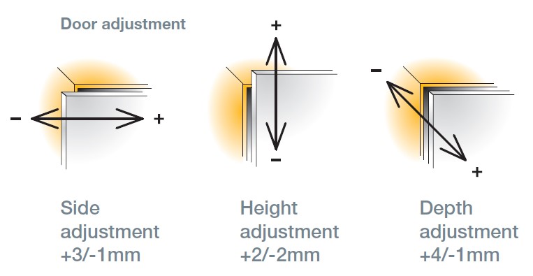 - регулировка по глубине — +4/-1 мм;