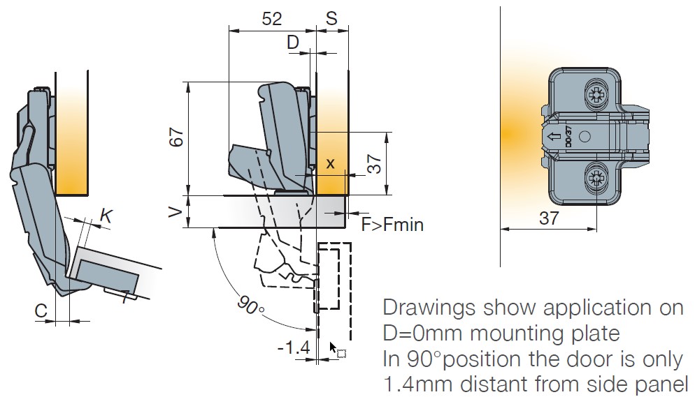 - глубина сверления под чашку — 12 мм;