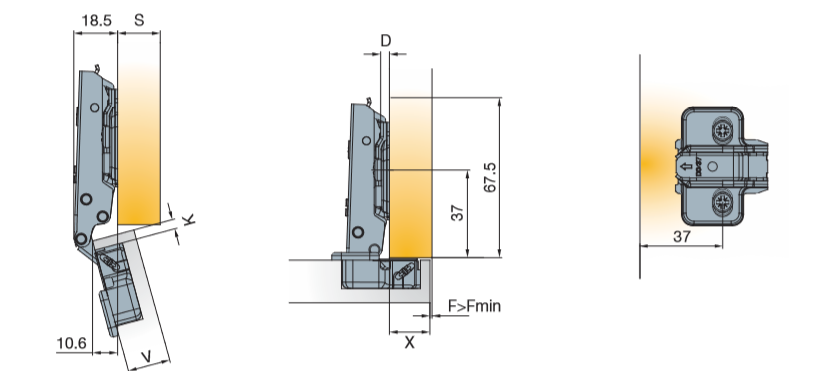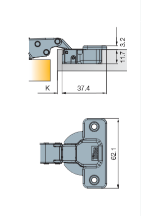 Глубина сверления под чашку петли, мм