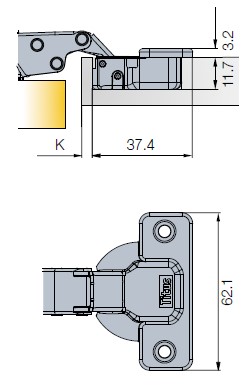 Петля T-type 110/45/17 мм Touch Opening арт.704-0662-054-00