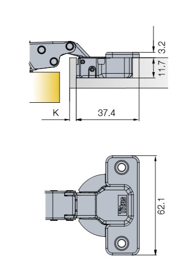 Глубина сверления под чашку петли, мм