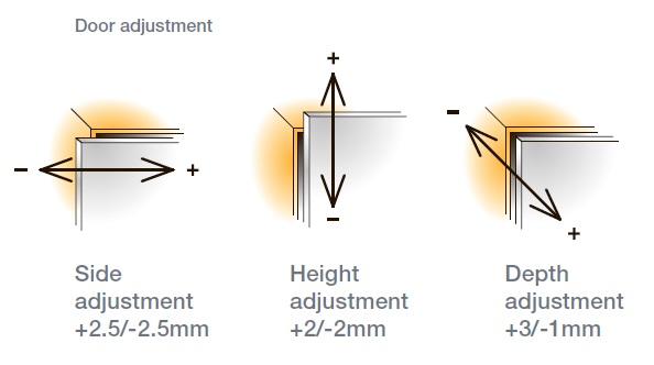 - регулировка по глубине — +3/-1 мм;
