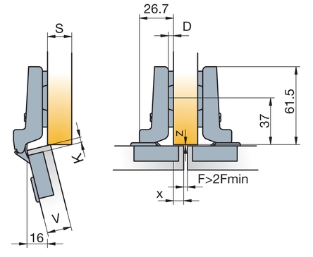 Глубина сверления под чашку петли, мм
