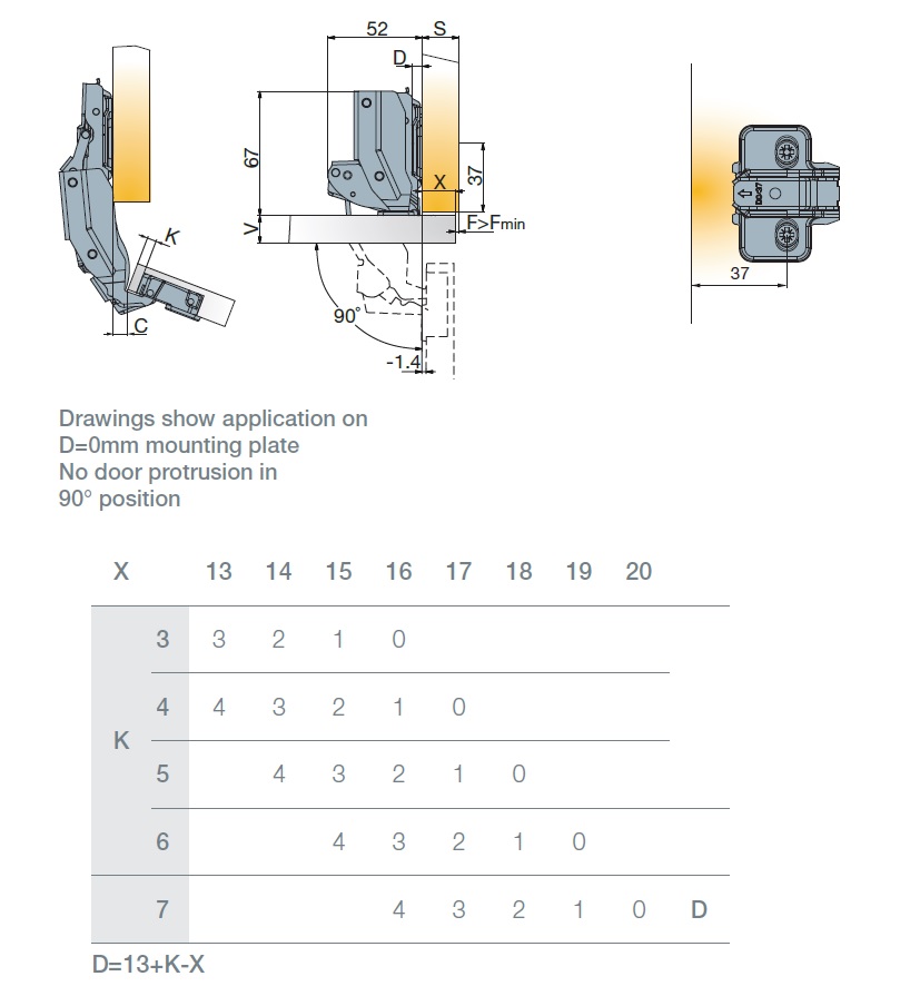 Глубина сверления под чашку петли, мм