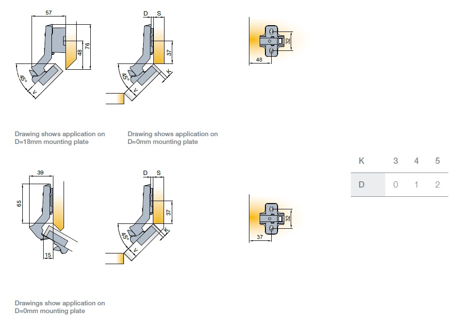 Петля мебельная Titus S-Type i3 угловая (45гр) 110/48/18 мм. арт.242-0H17-650-00