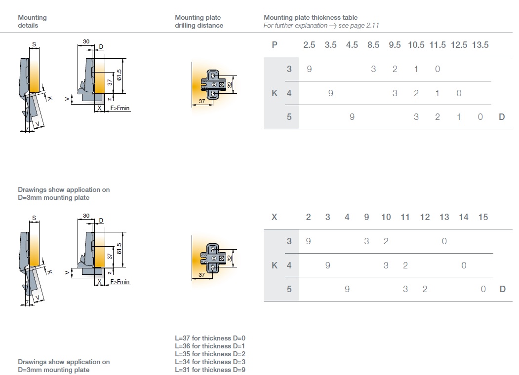 Глубина сверления под чашку петли, мм