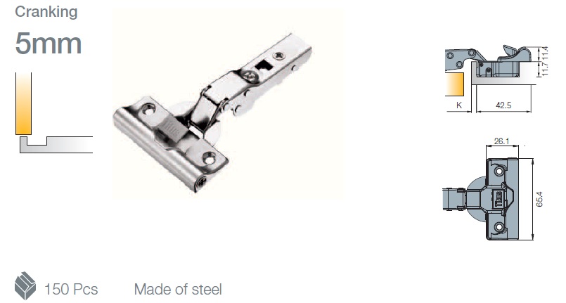 Петля мебельная Titus T-Type Glissando 90 градусов с доводчиком 110/45/5 мм и cистемой ускоренной сборки Easy-fix арт.701-0BT4-650-00