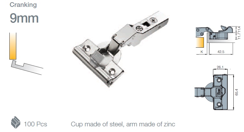 Петля мебельная Titus T-Type Glissando угловая 15 градусов с доводчиком 110/45/9 мм. Арт: 701-0D64-650-00