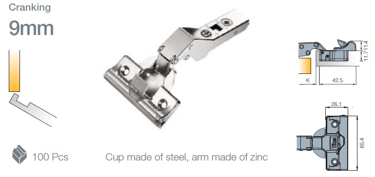 Петля мебельная Titus T-Type Glissando угловая 30 градусов с доводчиком 110/48/9 мм для машинной установки. Арт: 701-0E60-650-00