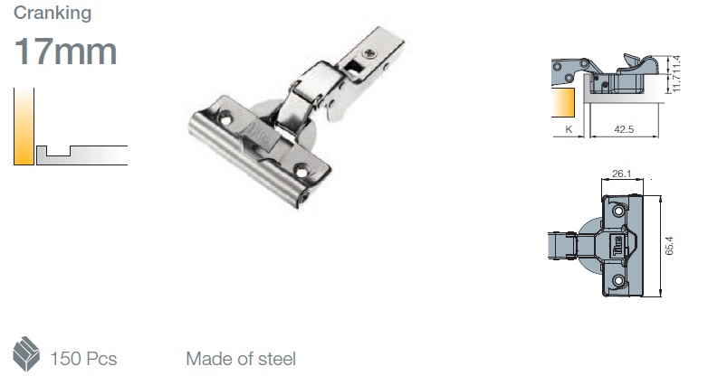 Петля с доводчиком T-type Glissando 95/52/17 мм арт.708-0WP0-054-00