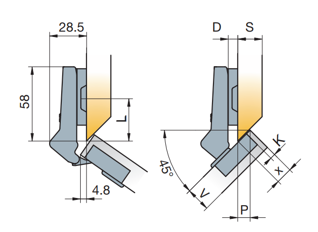 Петля мебельная Titus B-Type-i угловая 45 градусов 110/45/9 мм. Арт: 954-0154-650-00