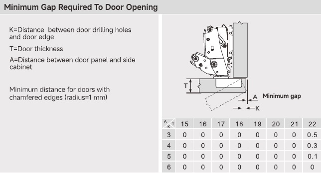 Глубина сверления под чашку петли, мм