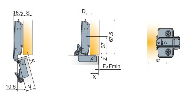 Петля мебельная Titus T-Type Glissando 90 градусов с доводчиком 110/48/0 мм и cистемой ускоренной сборки Easy-fix арт.701-0AS4-054-00